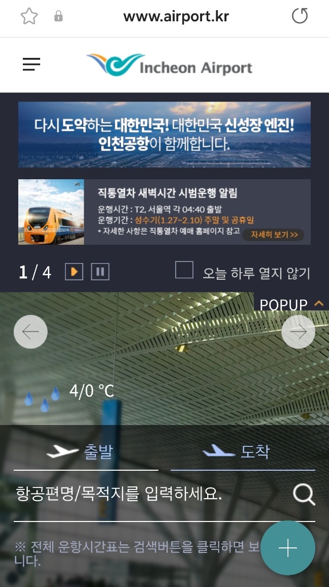 이럴때 유용한 사이트가 바로 인천공항 (www.airport.kr) 사이트인데요,