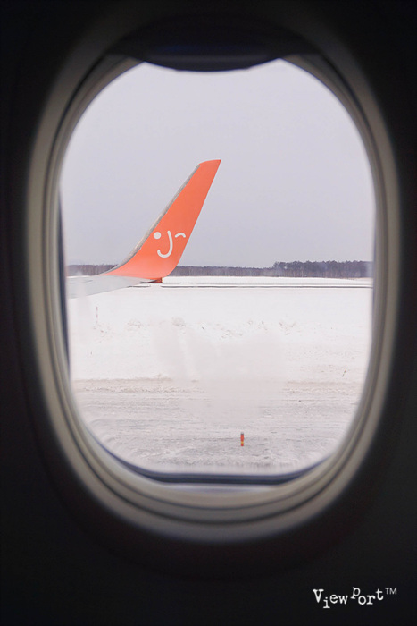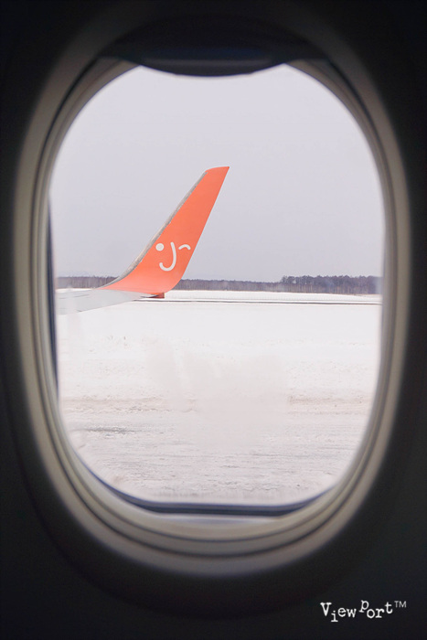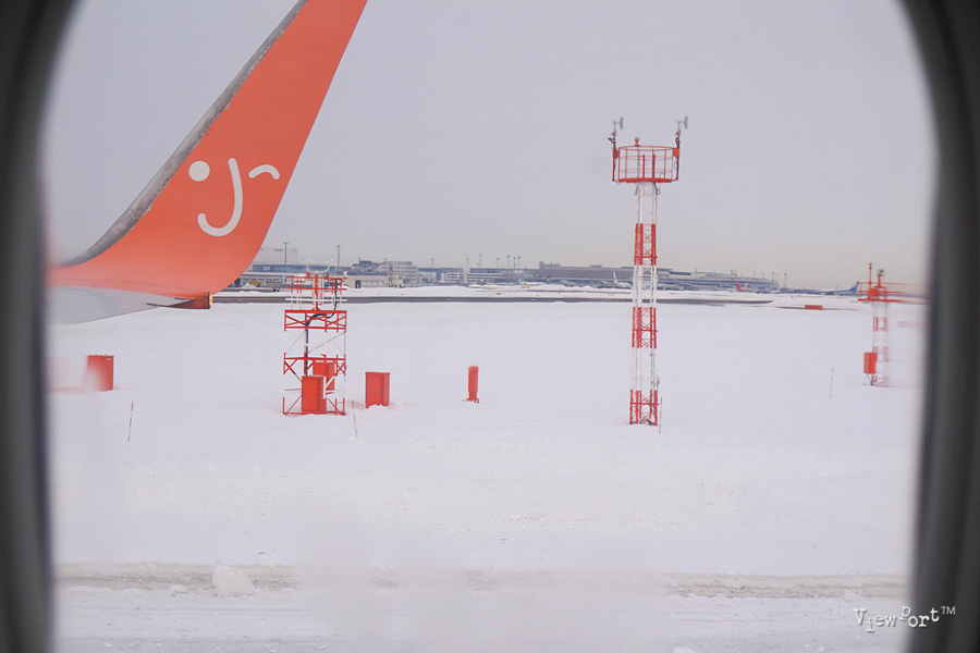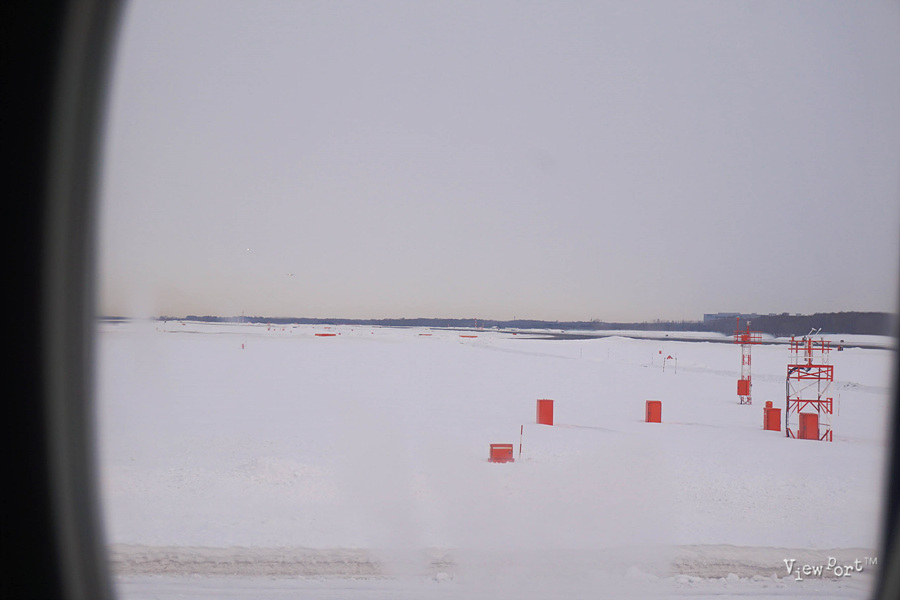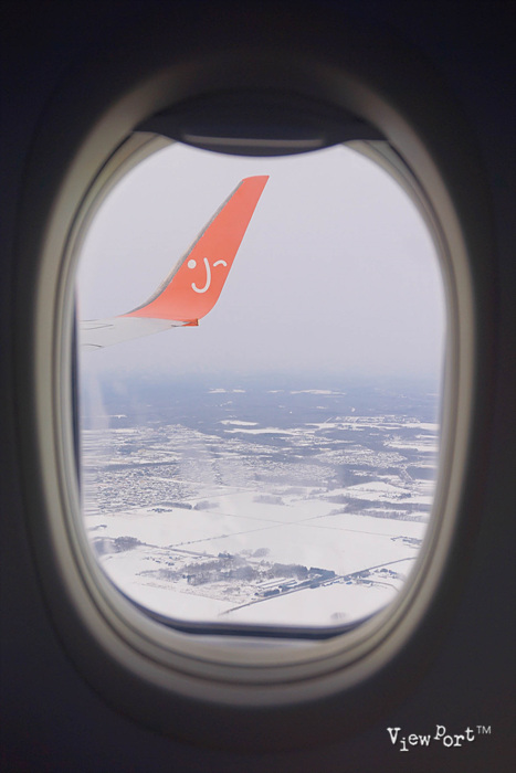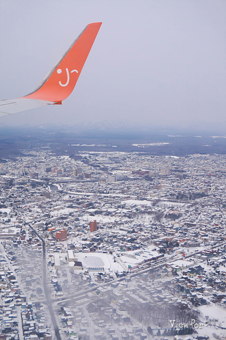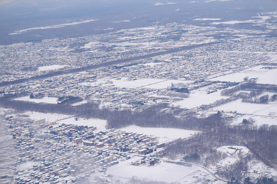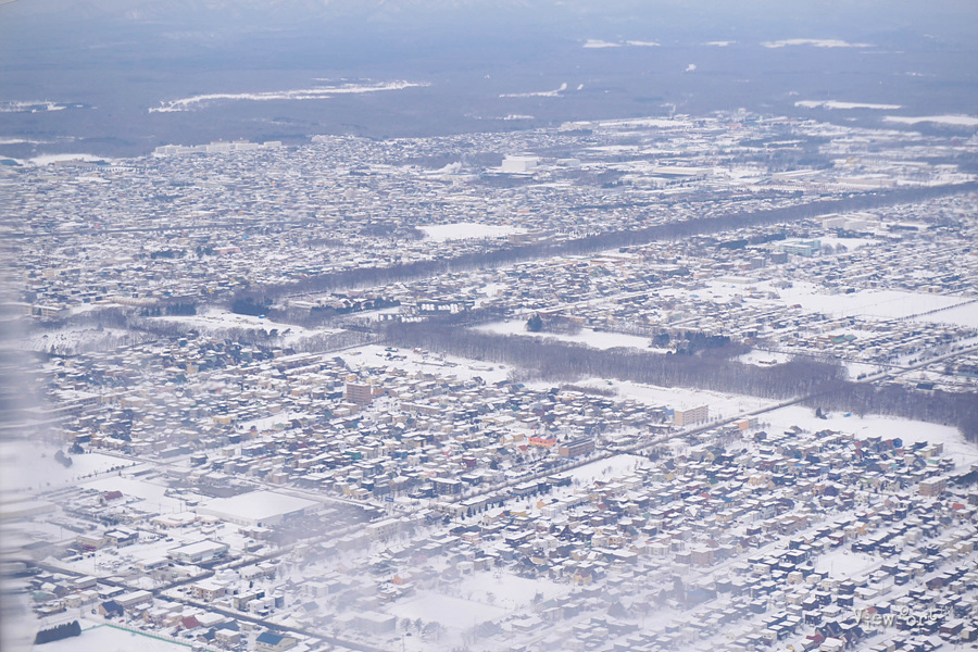 비행기에서 삿포로의 눈덮인 겨울 풍경을