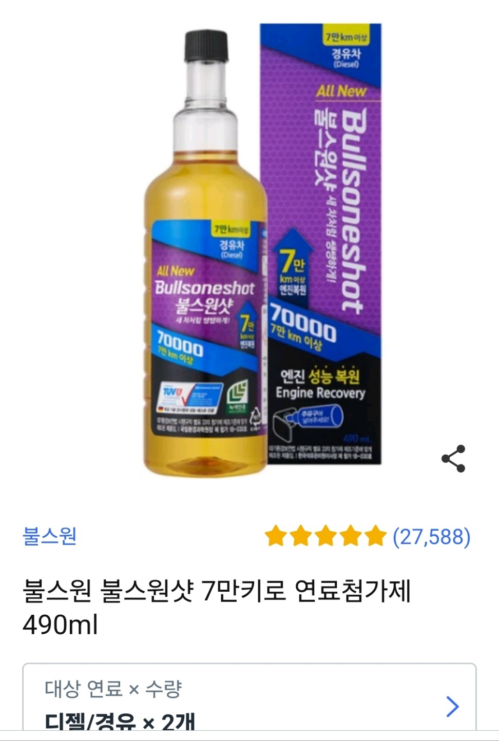 그렇게 쿠팡에서 불스원샷 2개들이를 구입하고, 불순 원샷 한 통 넣고 서울에서 여주 아울렛까지 왕복 주행을 했습니다.