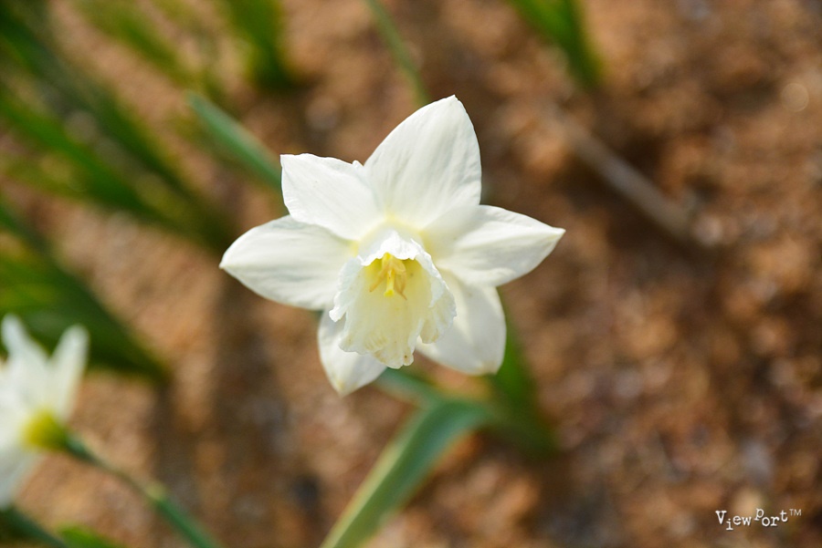 건너편에는 노란색과 하얀색 수선화가 피어 있습니다