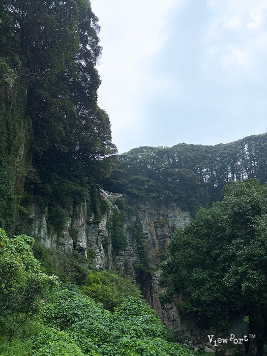 울창한 숲과 기암절벽의 폭포사이로