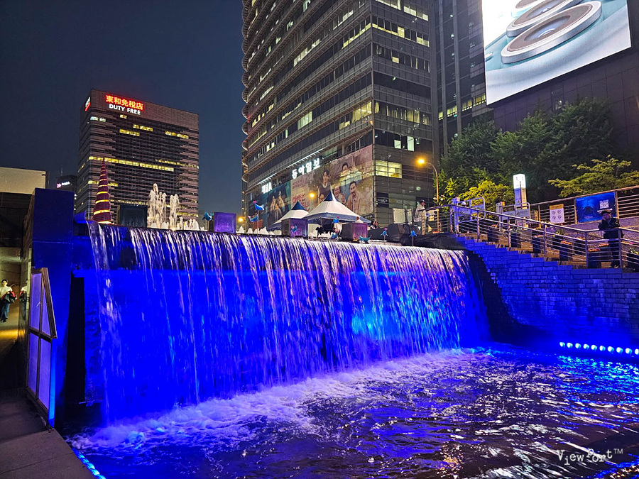 청계광장에서 시작되는 폭포에는 파란조명이