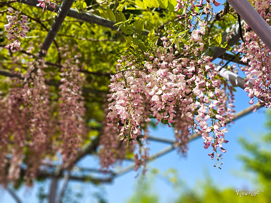 보통 등나무꽃은 보라색이 많은데 이곳은 연한 핑크빛 꽃이 피어 있는데요, 바람이 불때마다 살랑살랑 흔들리는게 너무 예쁩니다