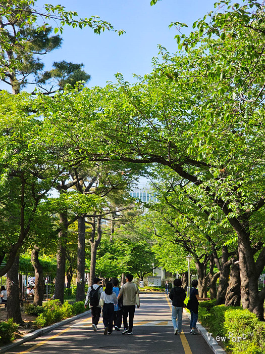 요즘 한낮에는 26도가 넘는 더위가 기승을 부리는데요, 정독도서관 곳곳에는 푸른 나무들과 잔디밭, 그리고 등나무 그늘이 드리워진 벤치가 이어져 있어 쉬어가기도 좋네요