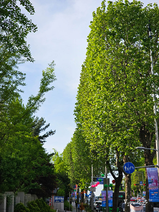 길거리 가로수가 쭉쭉뻗어 있는데