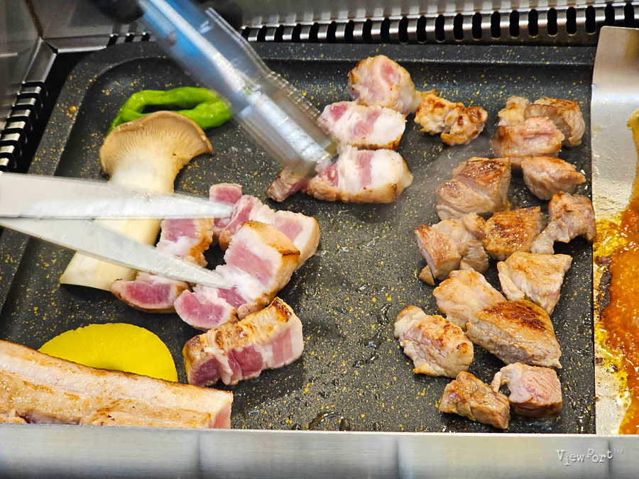 저도 먼저 익은 고기를 먹어보고 더 익힐지, 이정도로 됐는지를 확인했습니다