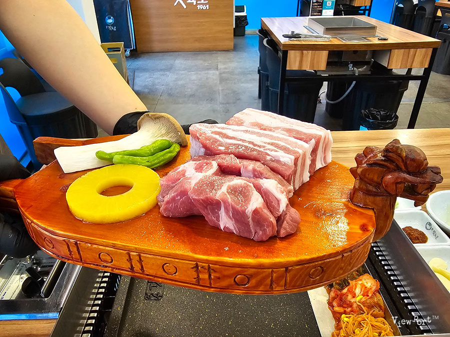 아 근데, 아까 고기를 보여주실땐 몰랐는데, 불판위에 고기를 올리고 보니