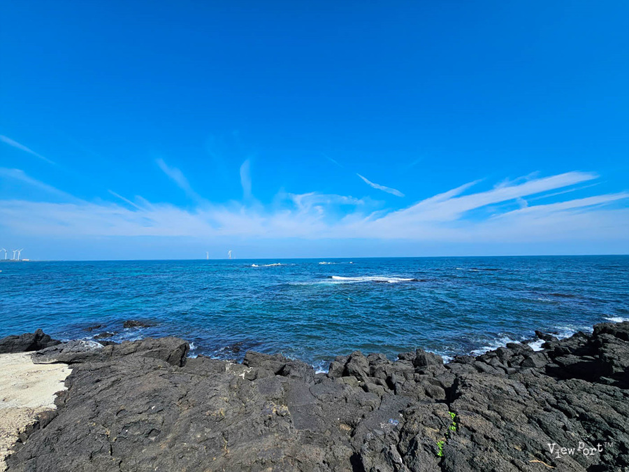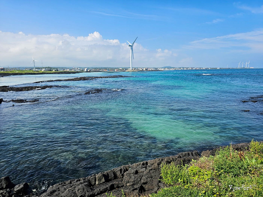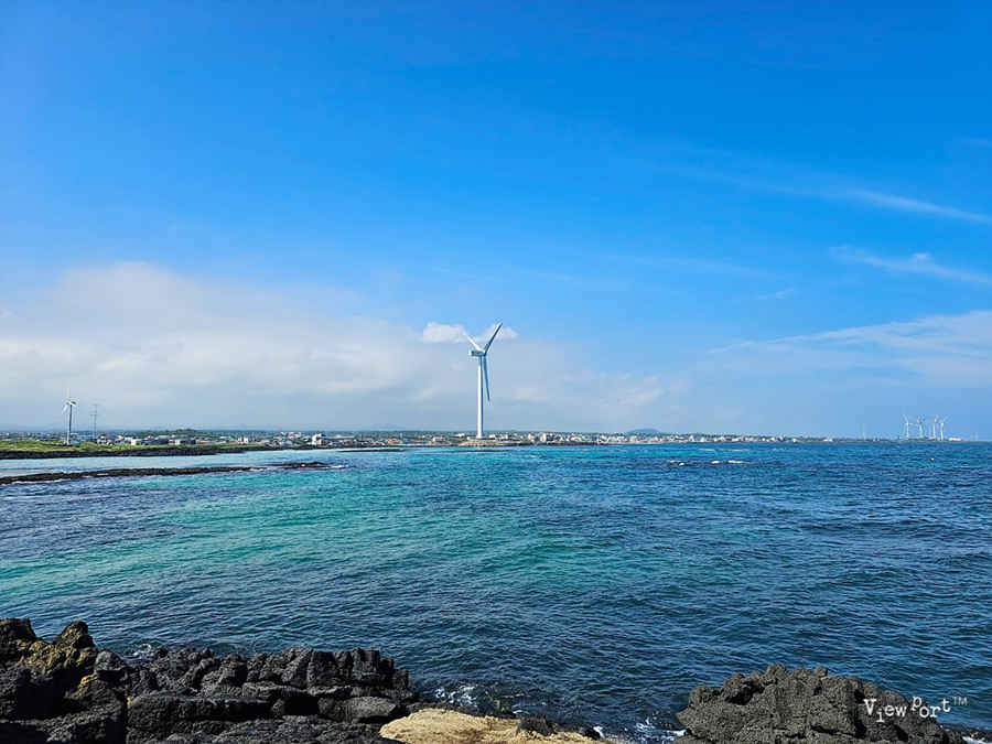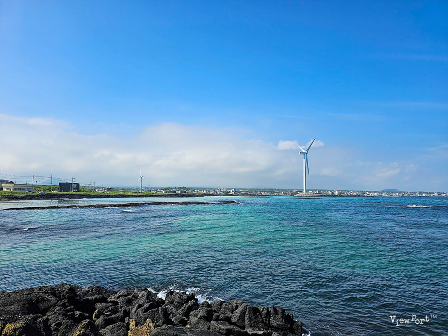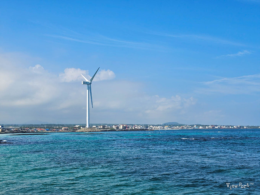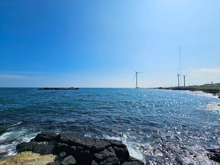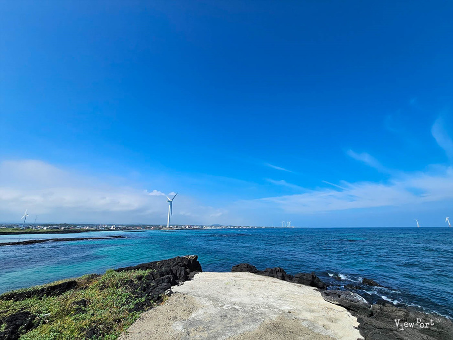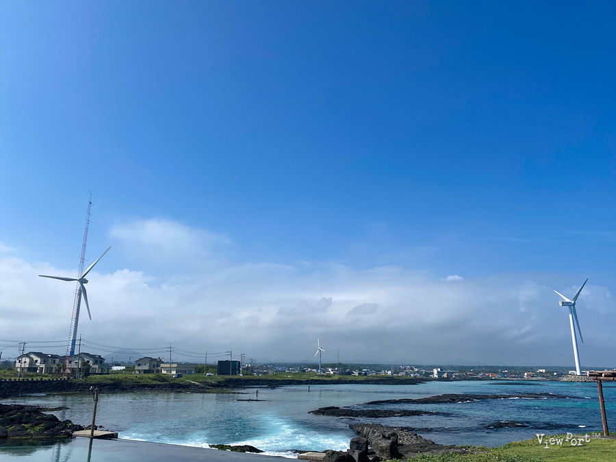 그리고 건너편으로는 하얀 풍력 발전기와 파란 바다와 파란 하늘이 어우러져 아주 멋진 풍경을 선사합니다