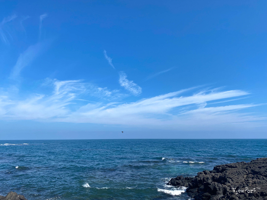 파란 하늘과 바다 사이로 하얀 구름들이 흩어져 가는 모습들이 아주 멋있어요.