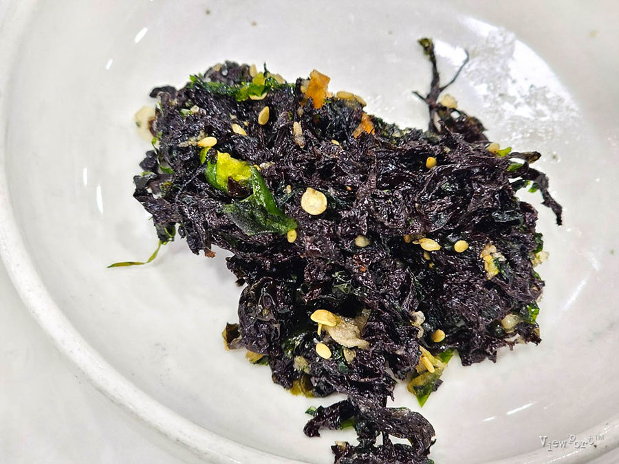 반찬으로 나온 것들은 콩장 갓김치 멸치조림 파래무침 갓김치 등이 나옵니다.