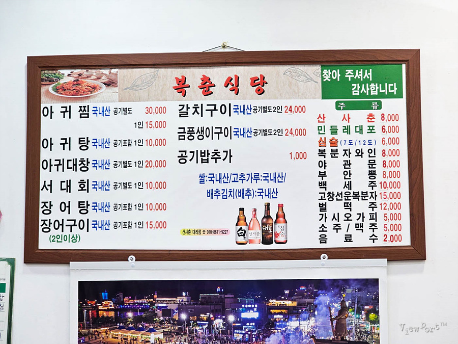 이곳의 주 메뉴는 아귀찜과 아귀탕 서대회 그리고 갈치구이인데요.
