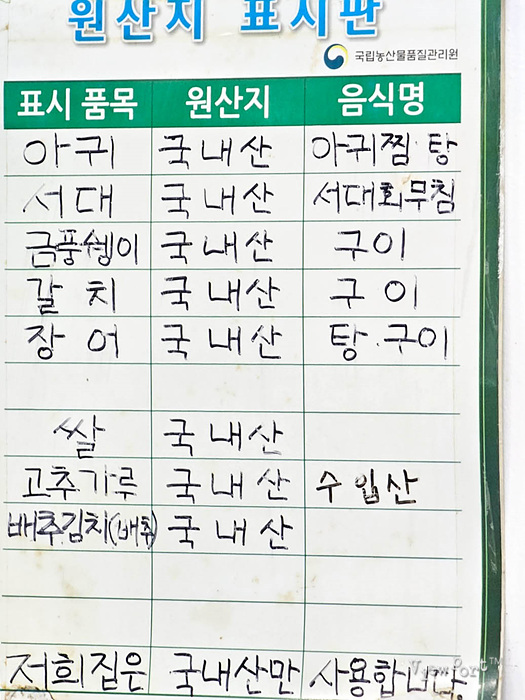 원산지 표지를 보면 아귀 서대 갈치 등 대부분 국내산을 쓰고 있습니다