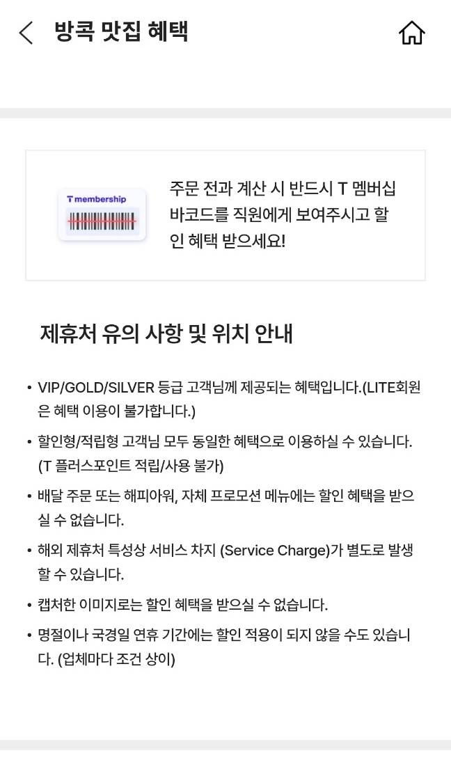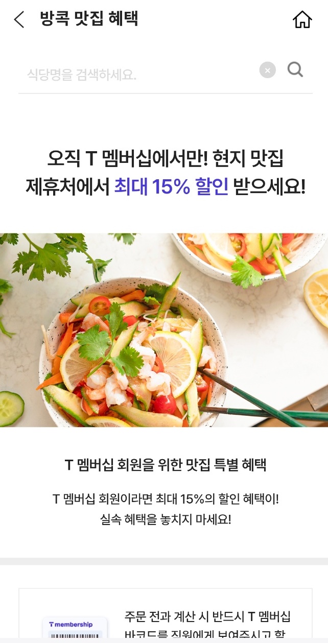 저도 작년 방콕여행에서 T멤버십 할인을 요긴하게 사용해서 할인을 받았습니다