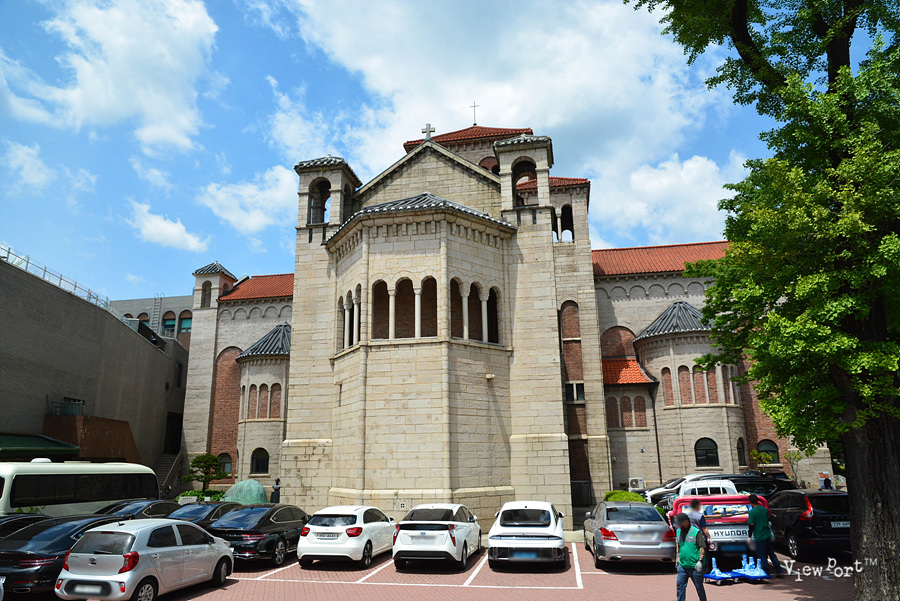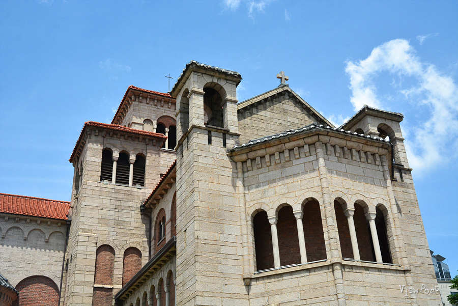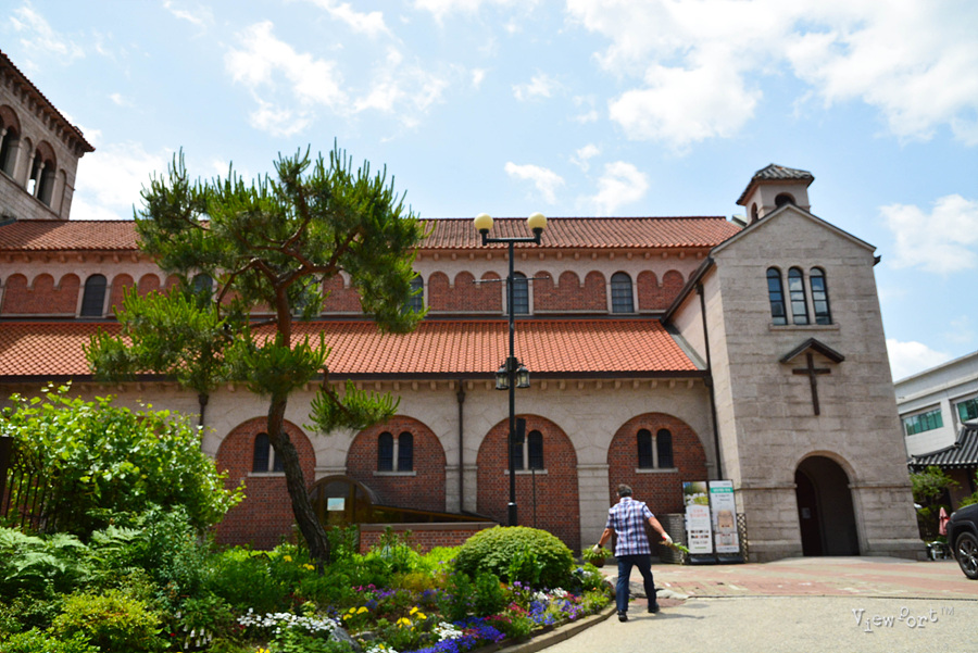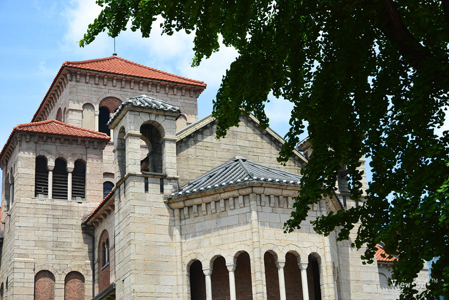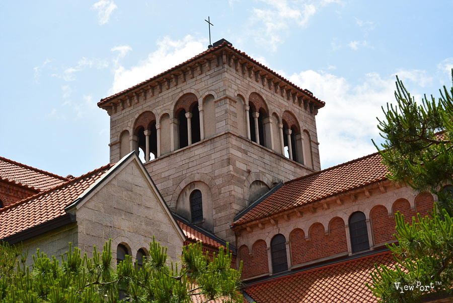 특히 로마네스크양식과 한국의 기와지붕의 양식이 섞여 축조된 건물이라고 하는데, 아마 저 까만 지붕의 기와 모양을 얘기하는 것 같네요