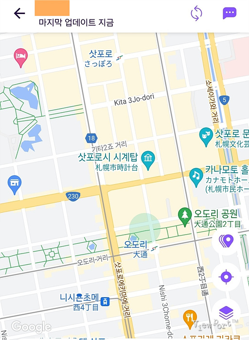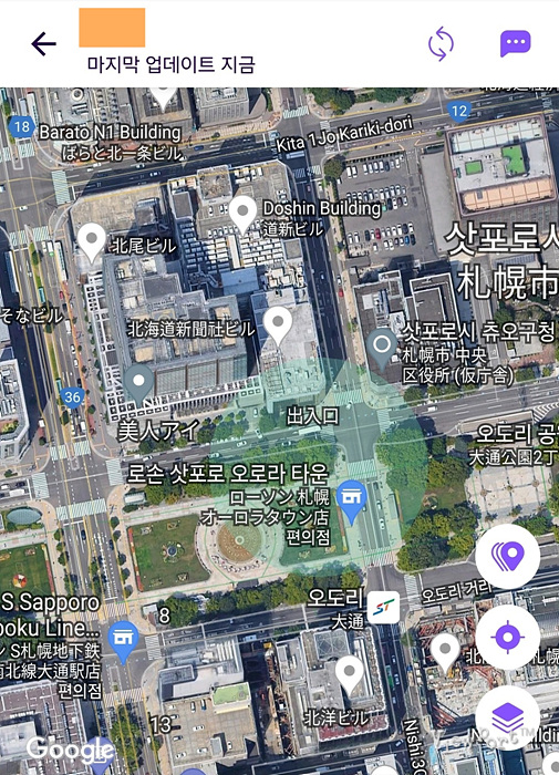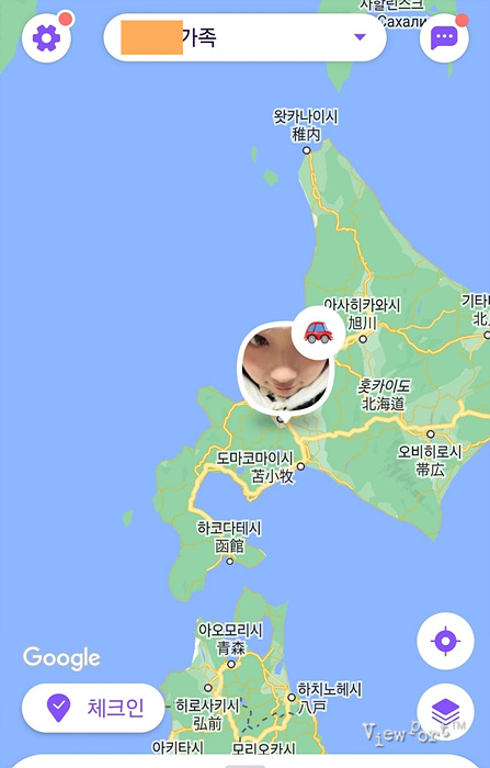 일본 도착후 다른 가족들에게 보여지는 실시간 위치입니다