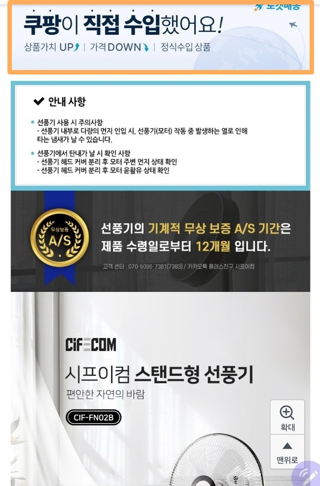 선풍기에 특별한 기능을 필요로하는것도 아니어서, 그냥 가성비 좋은 선풍기를 찾던중에 쿠팡에서 직수입해서 판매하는 나름 가성비 좋아 보이는 선풍기가 있어 구매하게 되었습니다.