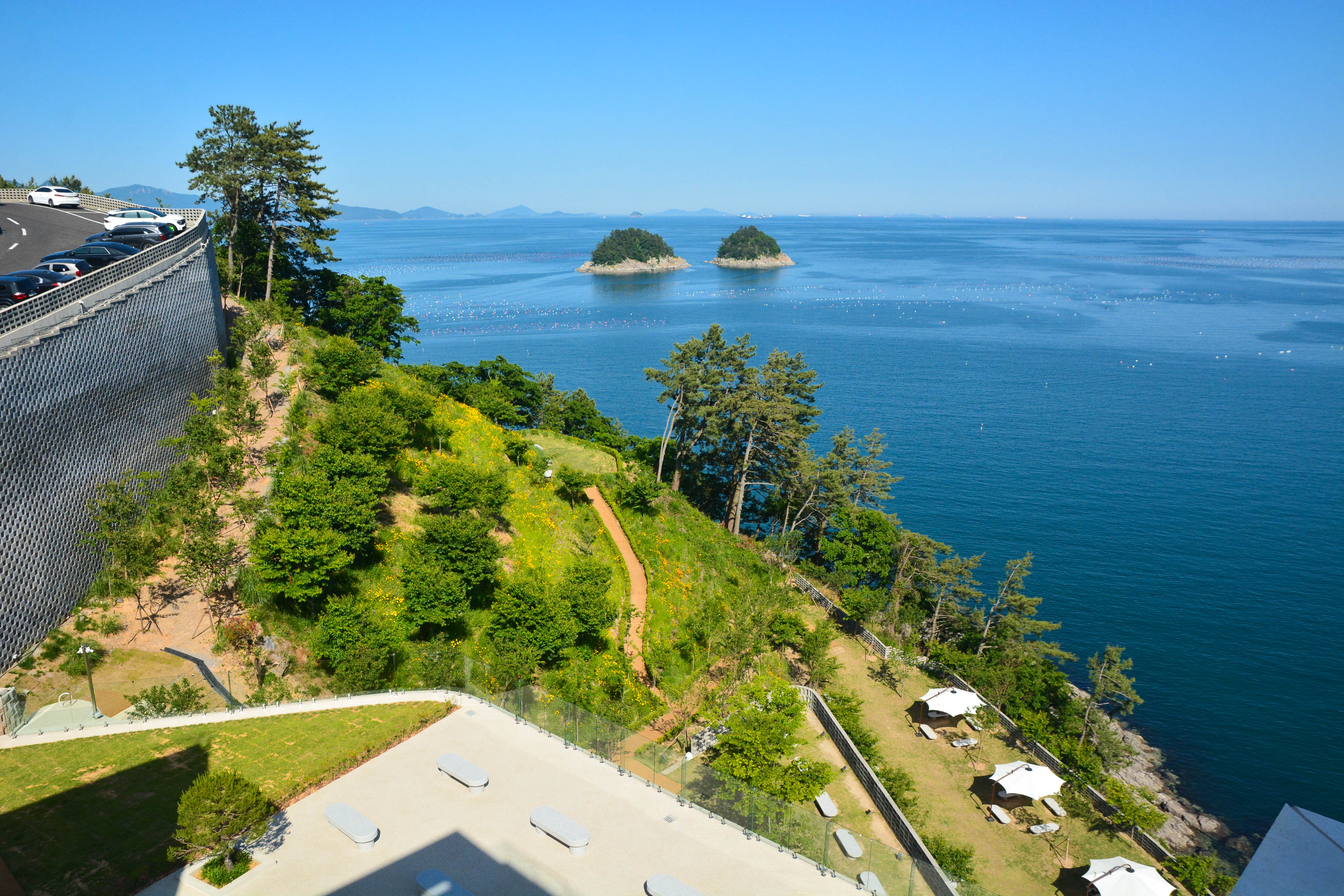 여수 돌산의 무슬목해변을 내려다 보는 위치에 있는 오션뷰 카페 모이핀의 바다전망을 앞서 포스팅했었는데요, 오늘 포스팅에서는 핀란드의 숲을 주제로 한 핀포레스트와 바닷가 가까이 갈 수 있는 해안 산책로를 돌아 보겠습니다