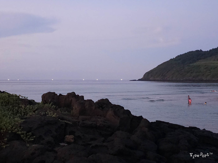 역시 바다 멀리 수평선 근처에 하얗게 반짝이는 고기잡이 배의 등만이 눈길을 끕니다