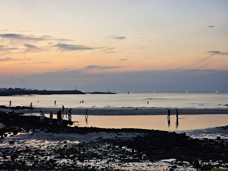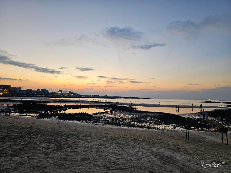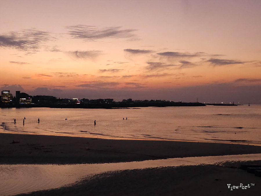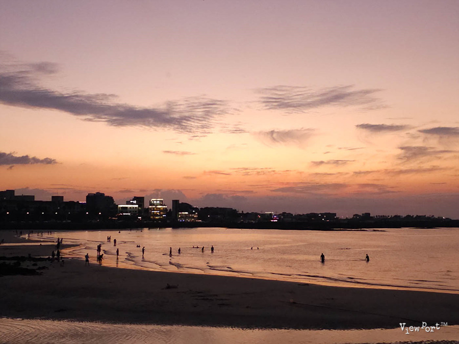 아직 채 들어오지 않은 미지근한 바닷물을 발목까지 빠져 가며 걷는 사람들만이 이 시간을 온전히 느끼는 듯 하죠