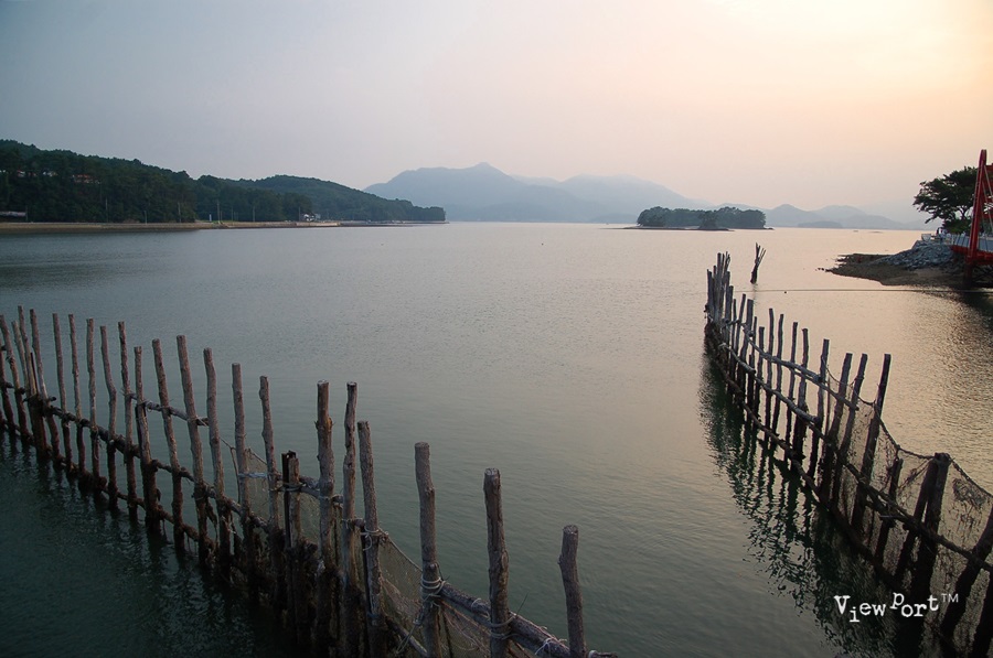 해가 넘어가면서 바다에 비치는 은은한 황금색 빛깔이 죽방렴을 배경으로 다른 곳에서 보는 해넘이와는 완전히 차별화 됩니다.