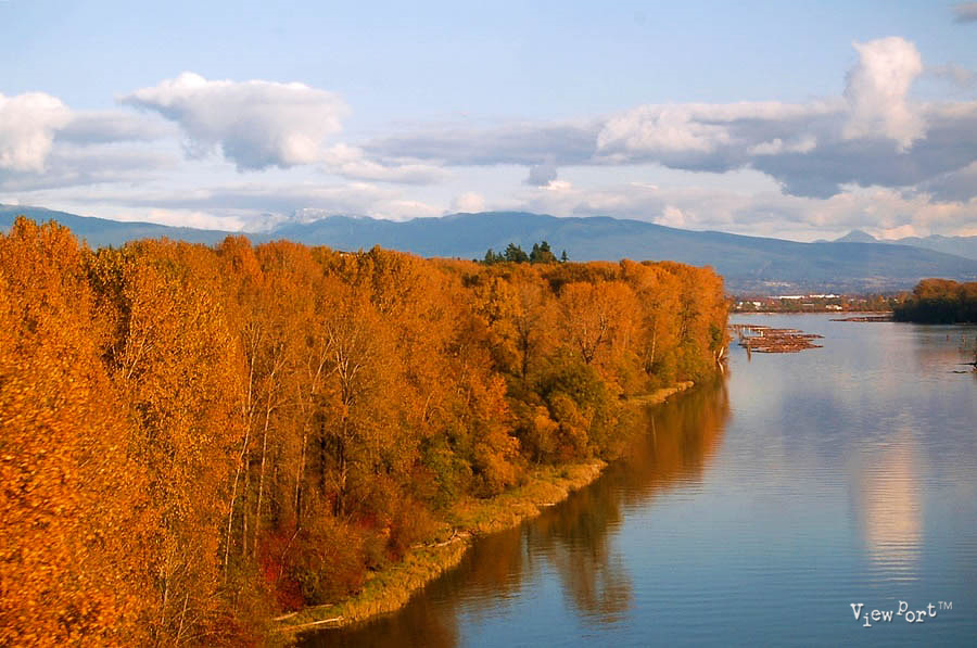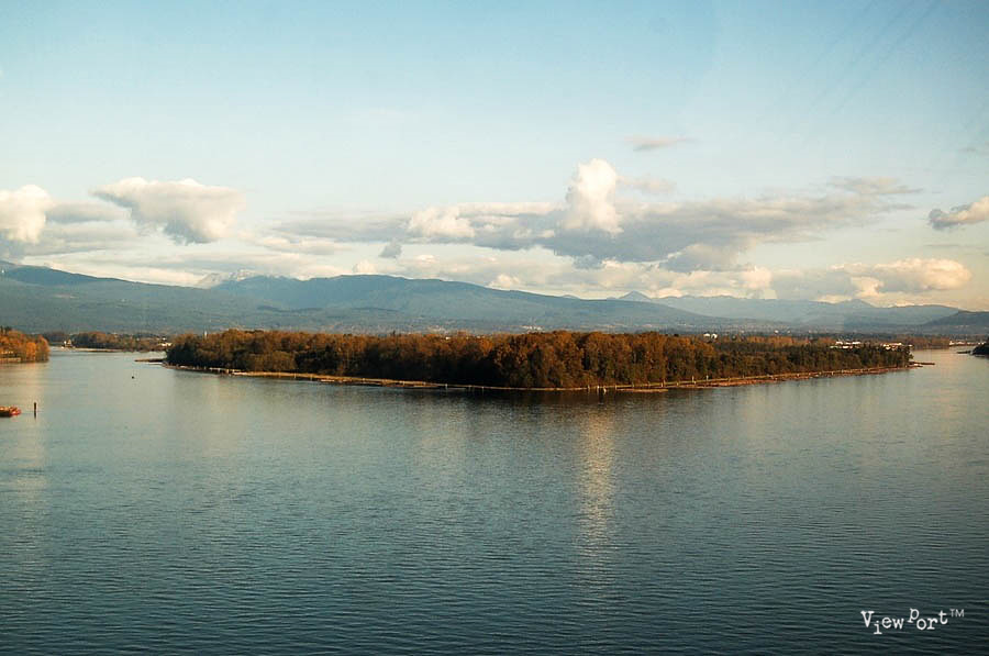 포트만브리지를 건너면서 저 멀리 보이는 더글러스 아일랜드와 프레이저강 상류에서부터 내려온 목재들을 정리하는 모습들 뒤로 하고