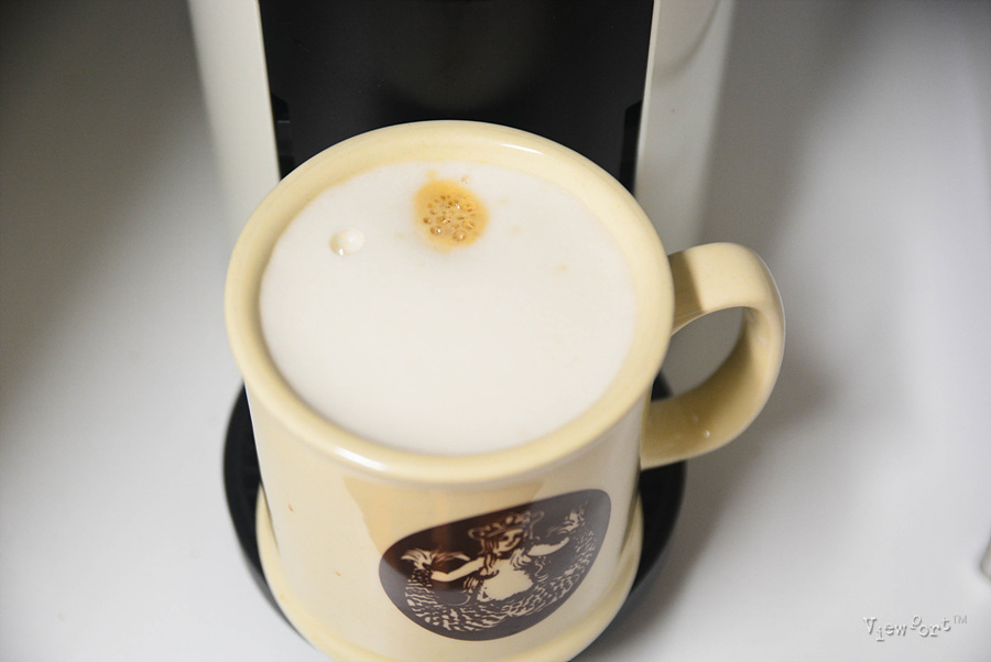 먼저 에어로치노에 어메이징 오토 바리스타를 넣고 따뜻하게 데워 준 후 네스프레소 버추어 커피 머신으로 커피를 내려 줍니다 라떼를 먹을 거기 때문에 롱고나 양이 많은 것보다는 라떼용 캡슐을 사용하는게 더 맛이 좋습니다