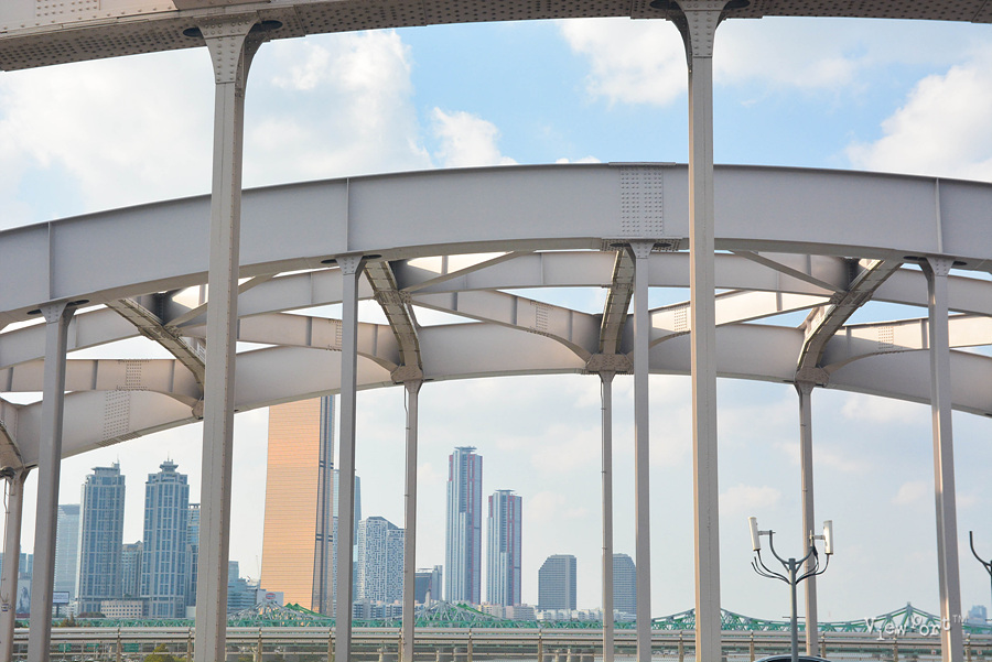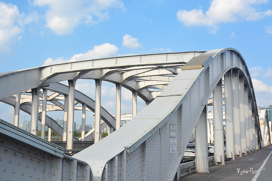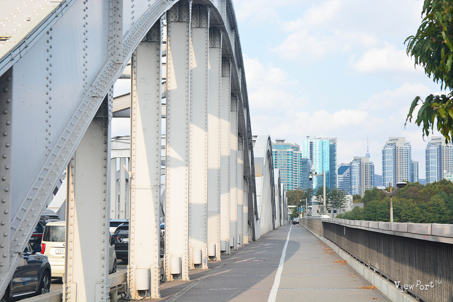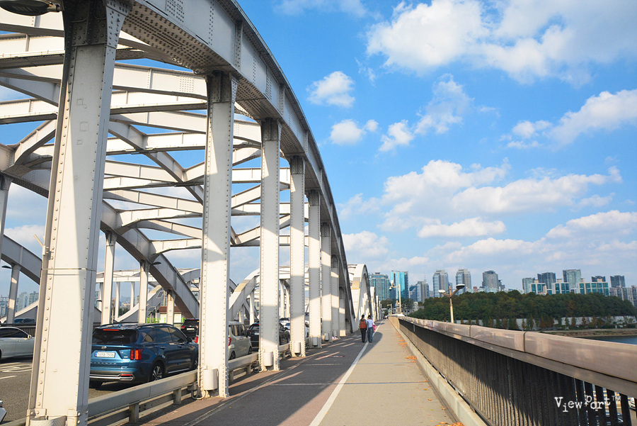 다른 한강 다리들은 주로 차량 통행을 목적으로 만들어져 있기 때문에 인도의 폭도 좁고 차들이 옆으로 싱싱 달리고 있어 위압감을 많이 느끼게 되거든요.