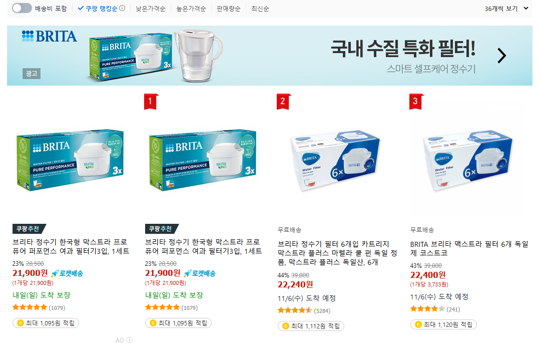 저는 주로 쿠팡에서 필터를 구입합니다.