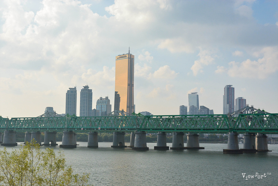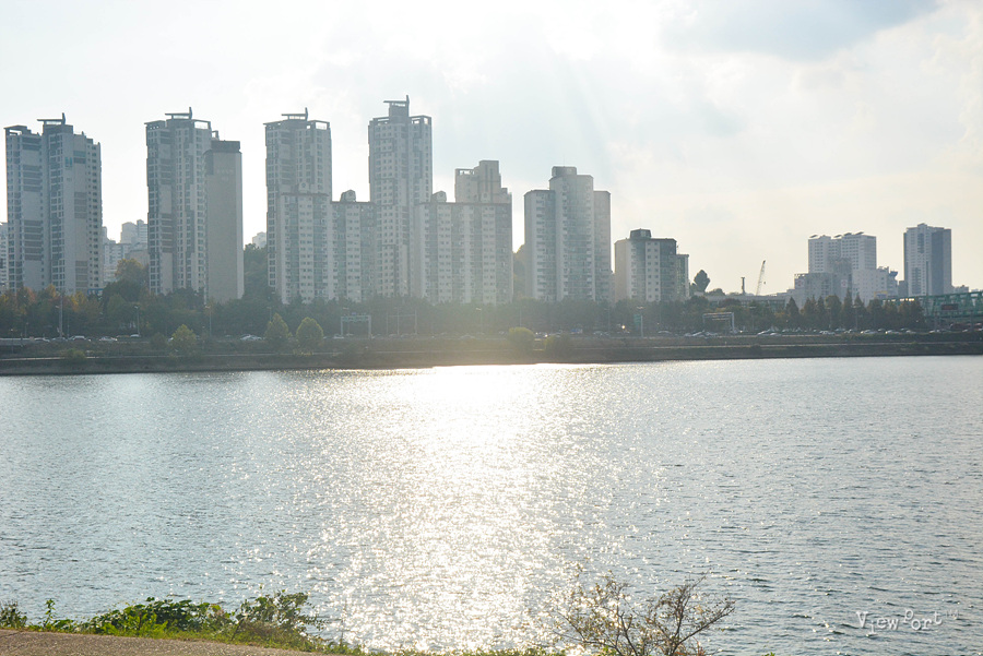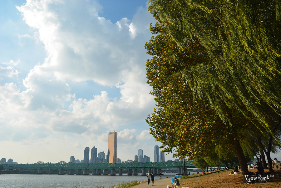강 건너 63빌딩은 햇볕을 받아 더 노랗게 반짝이고요.