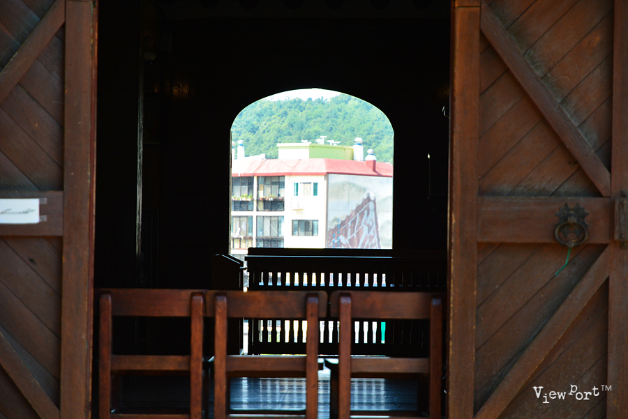입구 왼편에 커다란 종이 매달려 있 마치 밖에서 보기에는 성당보다는 사찰의 입구와 비슷한 느낌입니다.