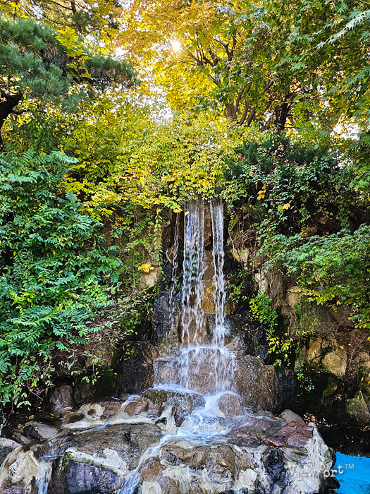 산책길을 따라 내려오는 길에 영빈관 뒷쪽으로 내려왔는데요, 작은 폭포가 하나 있네요.
