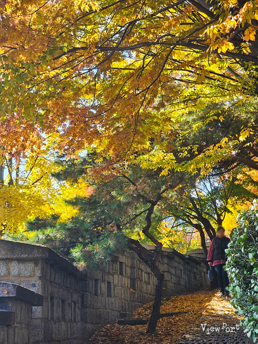 노란 은행나무 단풍이 물든 서울 신라호텔 야외 조각공원 산책로 서울성곽 다산성곽길 풍경