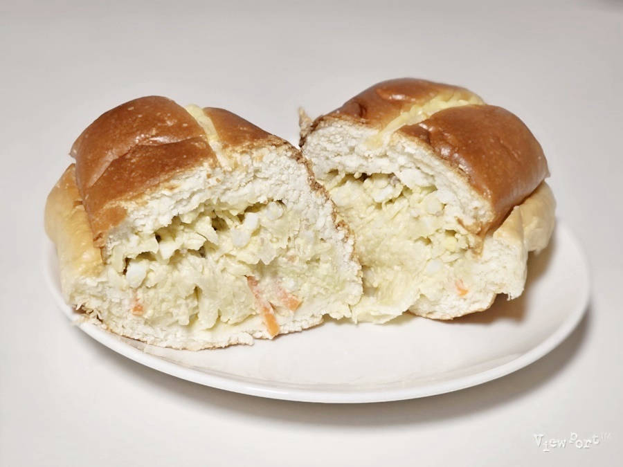 사라다빵은 바로 먹어야 돼서 먼저 사라다 빵을 잘랐는데요, 도톰한 빵 안에 들어 있는 사라다가 씹히는 맛이 사각사각 합니다. 그리고 여기 빵들이 대체로 크기도 크고 양도 많네요.