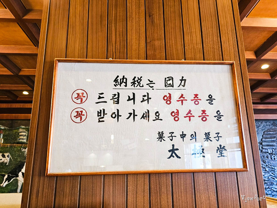 당시에는 세금을 제대로 내지 않는 일들이 많았기 때문에 스스로 납세를 통해 국가의 이바지하겠다는 태극당의 모토가 담긴 액자와 문구예요. 세금이 제대로 걷혀야 나라의 재정이 튼튼해지는데, 세금 탈루가 일상화된 시절이었다고 하죠. (심지어 이때는 영수증 모으기 운동까지 있었답니다)