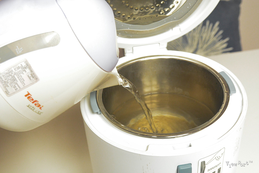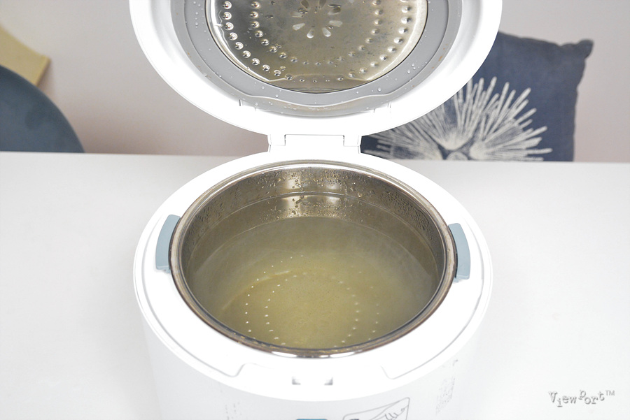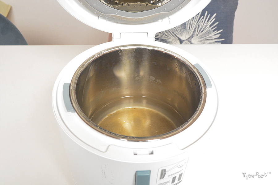 뜨거운 물에 구연산을 풀어준뒤 뚜껑을 덮어 30분정도 불려준 뒤, 뚜껑을 열어보면 바닥에 눌어 붙어 있던 이물질들이 떨어진 걸 볼 수 있습니다.