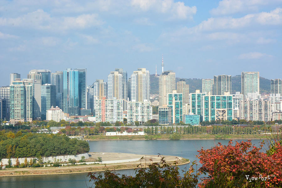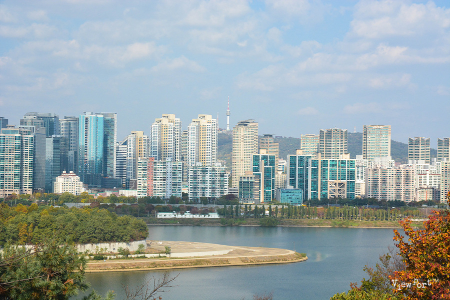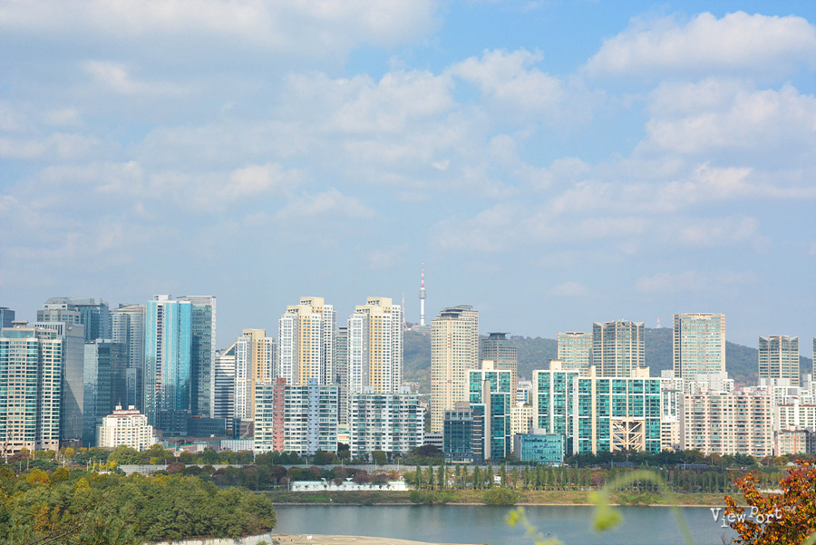 강 건너 방향으로는 이촌동 지역과 용산 지역이 보이고 그 뒤로 서울 남산타워가 보이네요