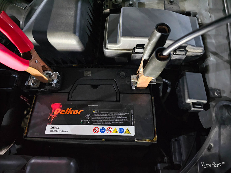 중간에 한번 체크를 해 보니 거의 시동이 걸릴랑 말랑한 수준이어서, 아래처럼 배터리에 마이너스 단자를 빼 놓았습니다.