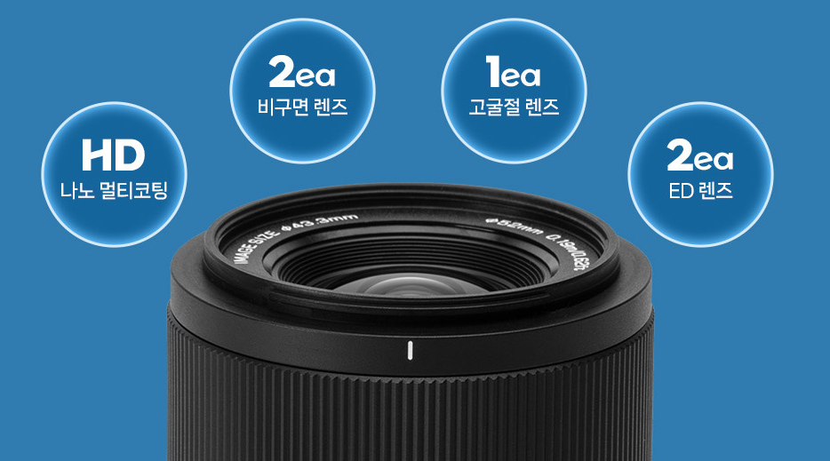 가볍고 풀프레임 렌즈라 필터 사이즈 52mm 빛의 광량도 기존 번들 렌즈보다는 훨씬 많이 받습니다.