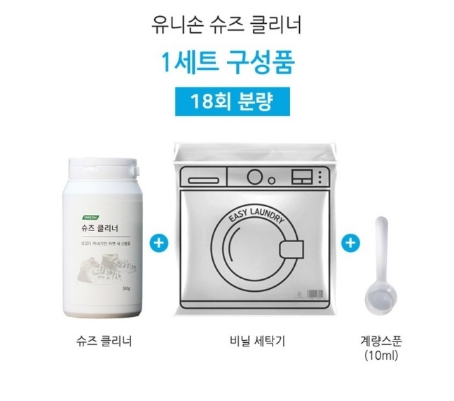 구성품은 비닐백과 슈즈 클리너가 동봉되어 오는데 슈즈클리너 한 통에 18회분 불량이라고 하니 1년 동안은 온 가족 모두 충분히 쓸 수 있을 것 같습니다