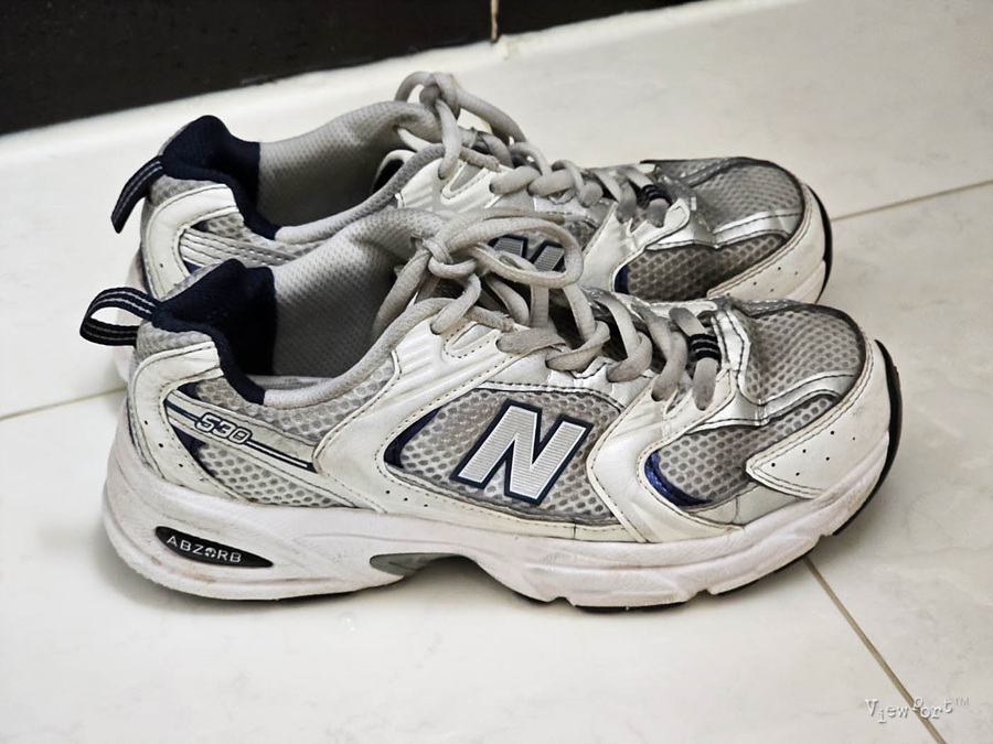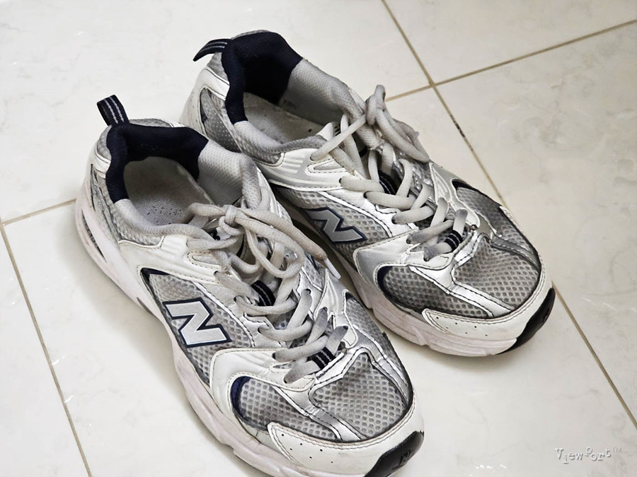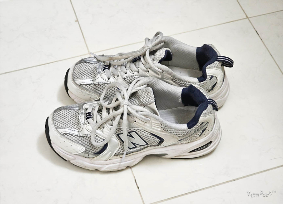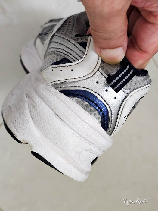보시는 것처럼 여름부터 겨울초까지 내내 운동하며 신었더니, 특히 메쉬 소재 쪽에 때들이 찌들어서 있습니다.