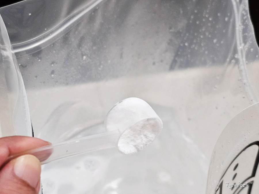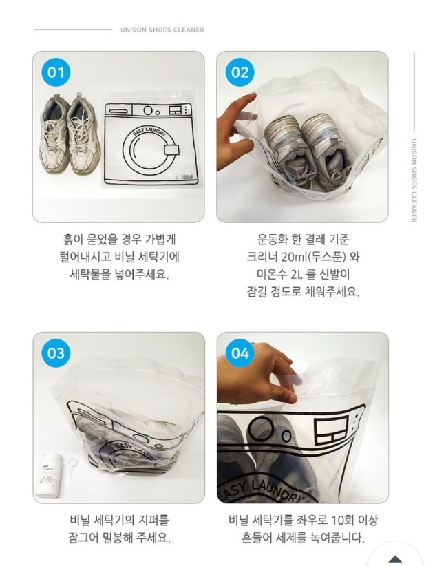 같이 배송된 비닐 지퍼백 안에 슈즈클리너를 넣고 미지근한 물을 가득 채운 뒤에