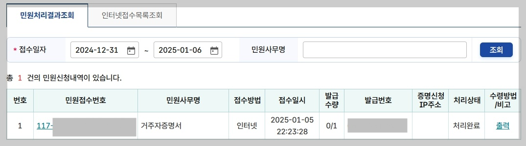 그리고 다음을 진행하면 민원 신청이 완료되었음을 볼 수 있는 화면이 나옵니다