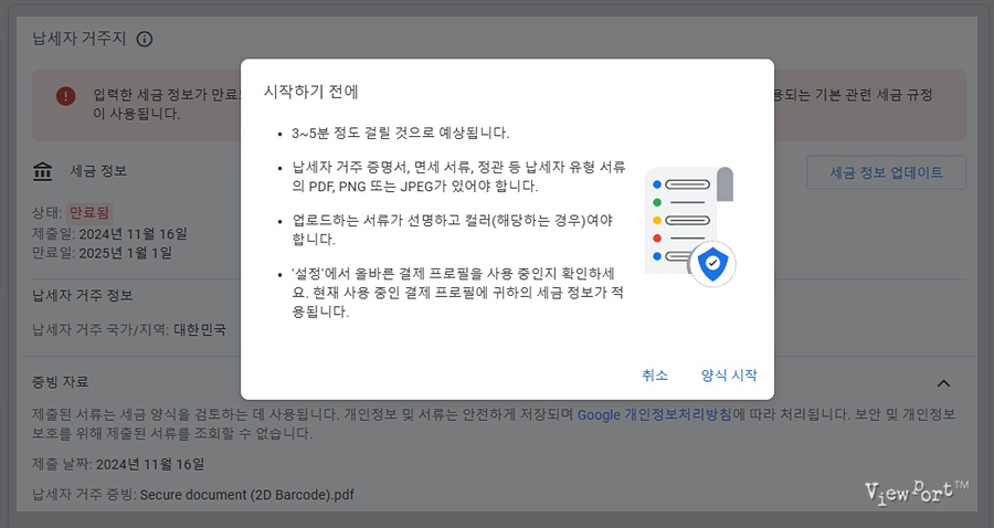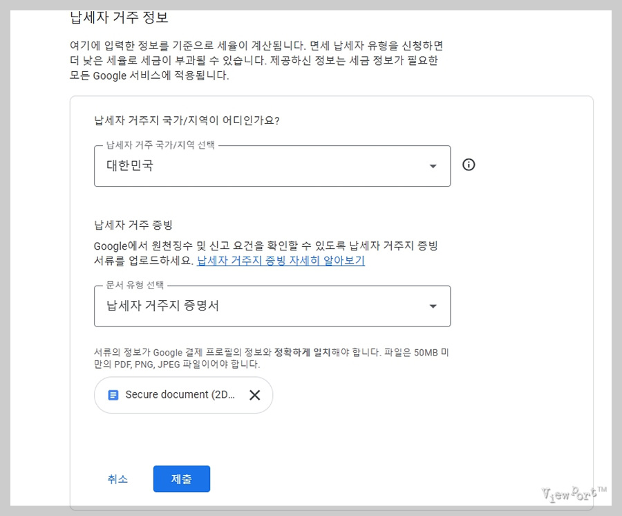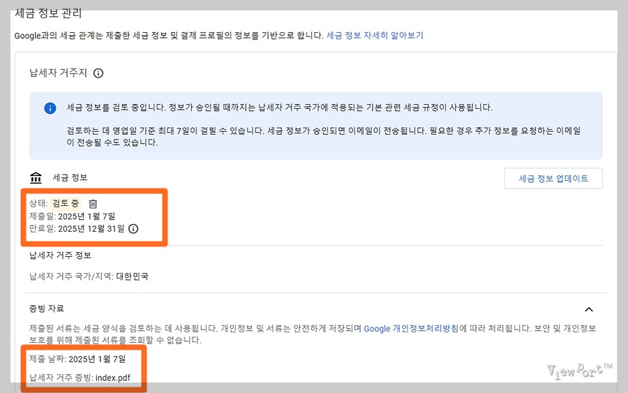 애드센스 싱가포르 세금정보 업데이트 방법과 국세청 홈택스 거주자증명서 발급방법 (납세자 거주지 증빙)뷰포트의 작은 창 밖 세상 / Viewport미국 애드센스에 대한 세금 정보 업데이트
