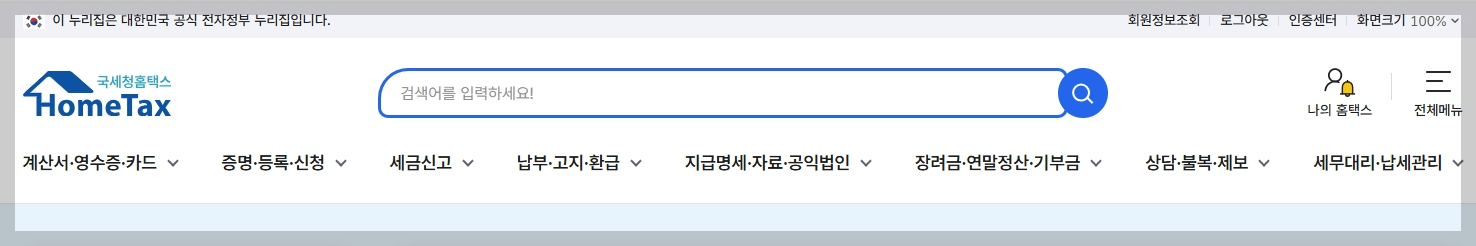 먼저 홈택스에 들어가서 거주자 증명서를 가져오는 작업을 시작하겠습니다
