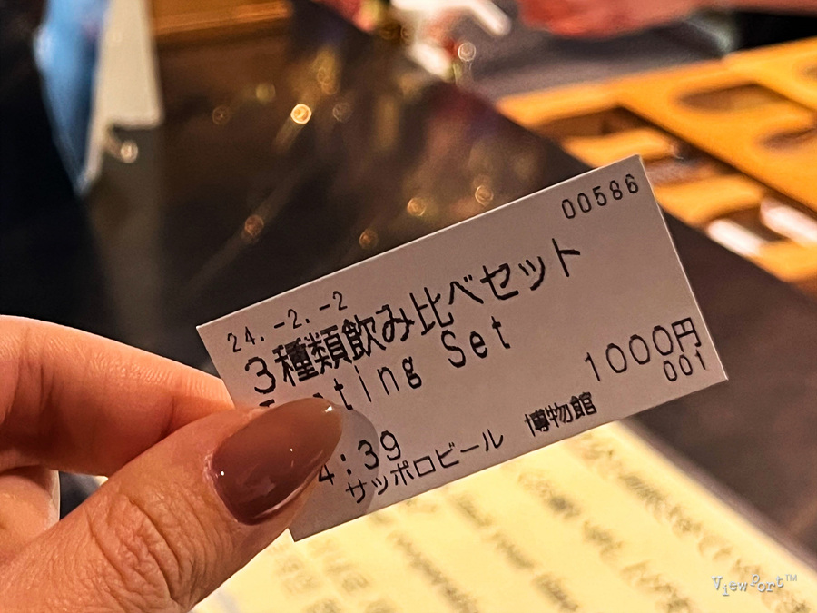 맥주 박물관 구경을 마치고 맥주 시험을 하기 위해 티켓을 끊었습니다. (세종류 음료권이 1000엔 이예요)