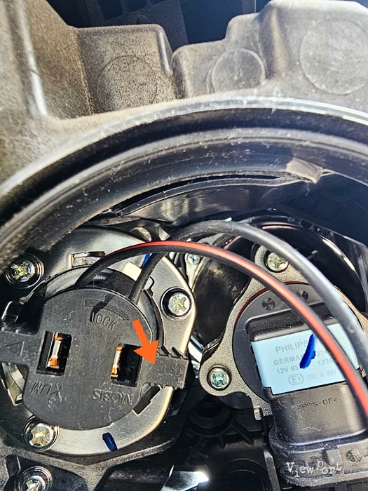 램프 교체를 위해서는 주황색 화살표 방향으로 할로겐 램프를 뽑아 주시면 됩니다.
