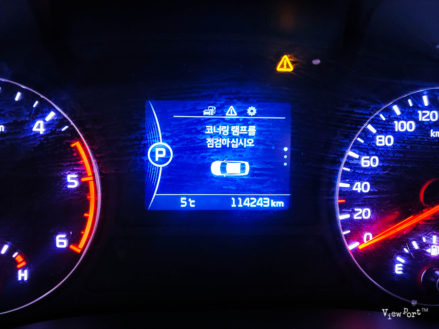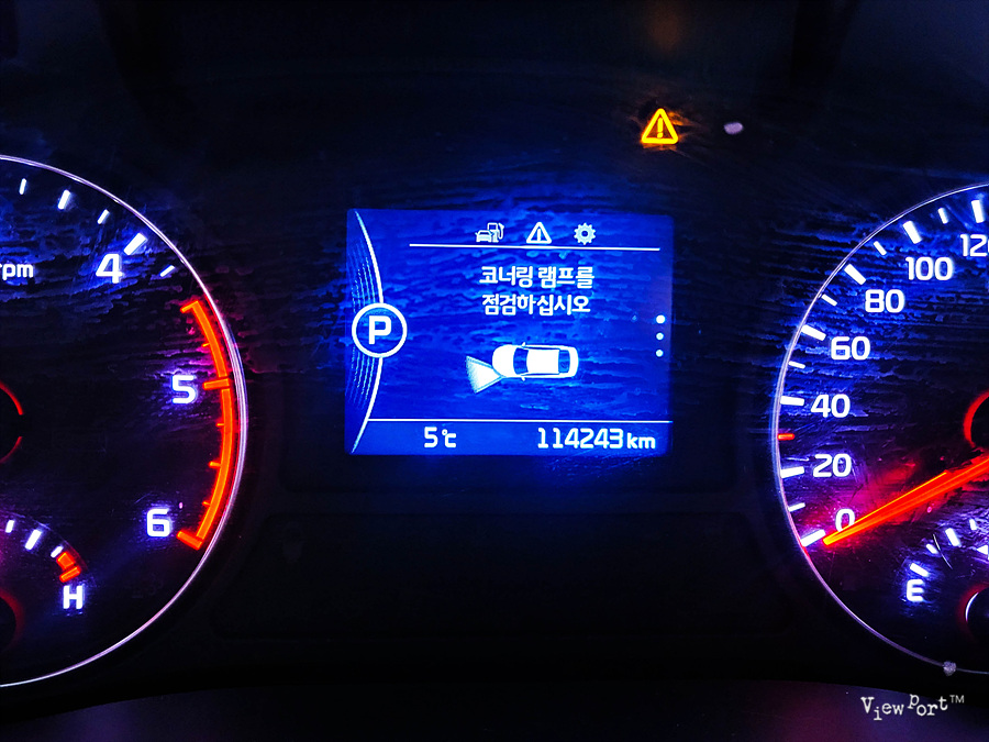 제 차의 경우는 코너링램프점검 알람과 함께 방향도 표시되는데요, 운전석 좌회전 방향 코너링램프 점검이 필요합니다.
