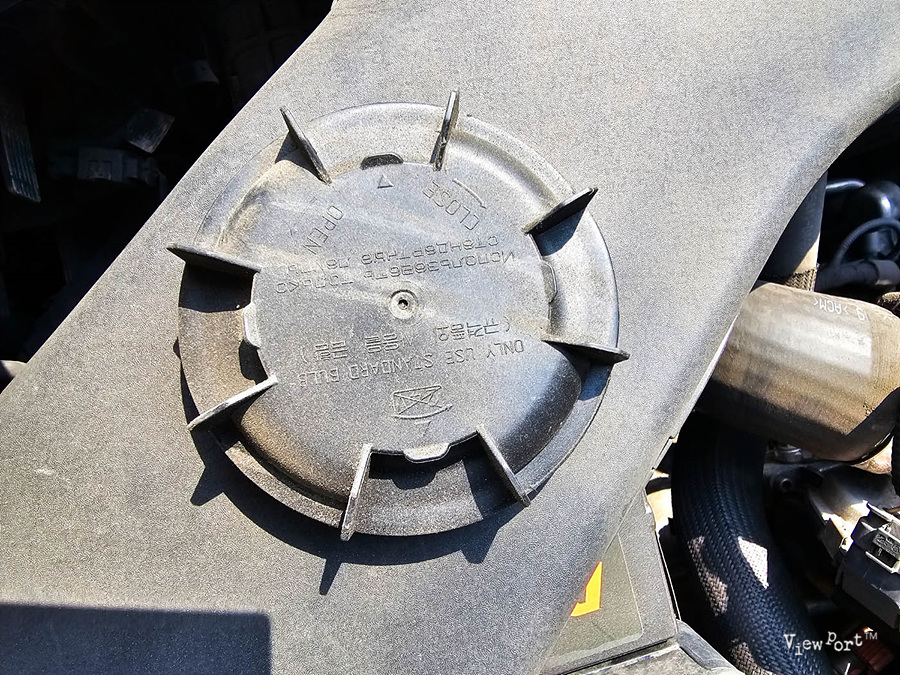 먼저 엔진룸을 보시면 화살표가 있는 뚜껑을 돌리면 쉽게 뚜껑이 탈거 됩니다.