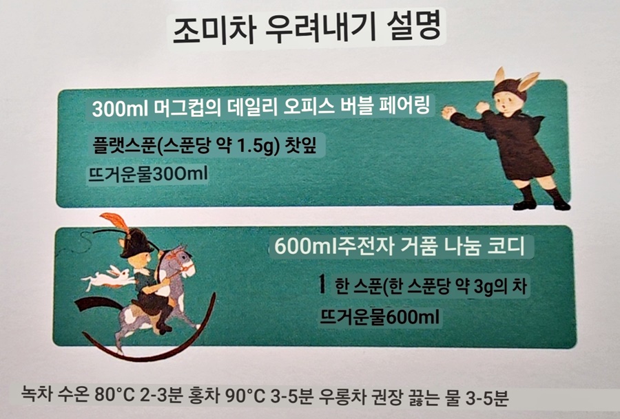 먼저 케이스 안에 차를 우려내는 방법에 대한 간단한 안내가 있네요.