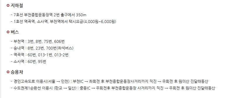 ▷ 주 소 : 경기도 부천시 춘의동 48-17 좌석 700번 (여의도 영등포 당산역 목동 연계) 일반버스 77번 (신월동 화곡역) |
